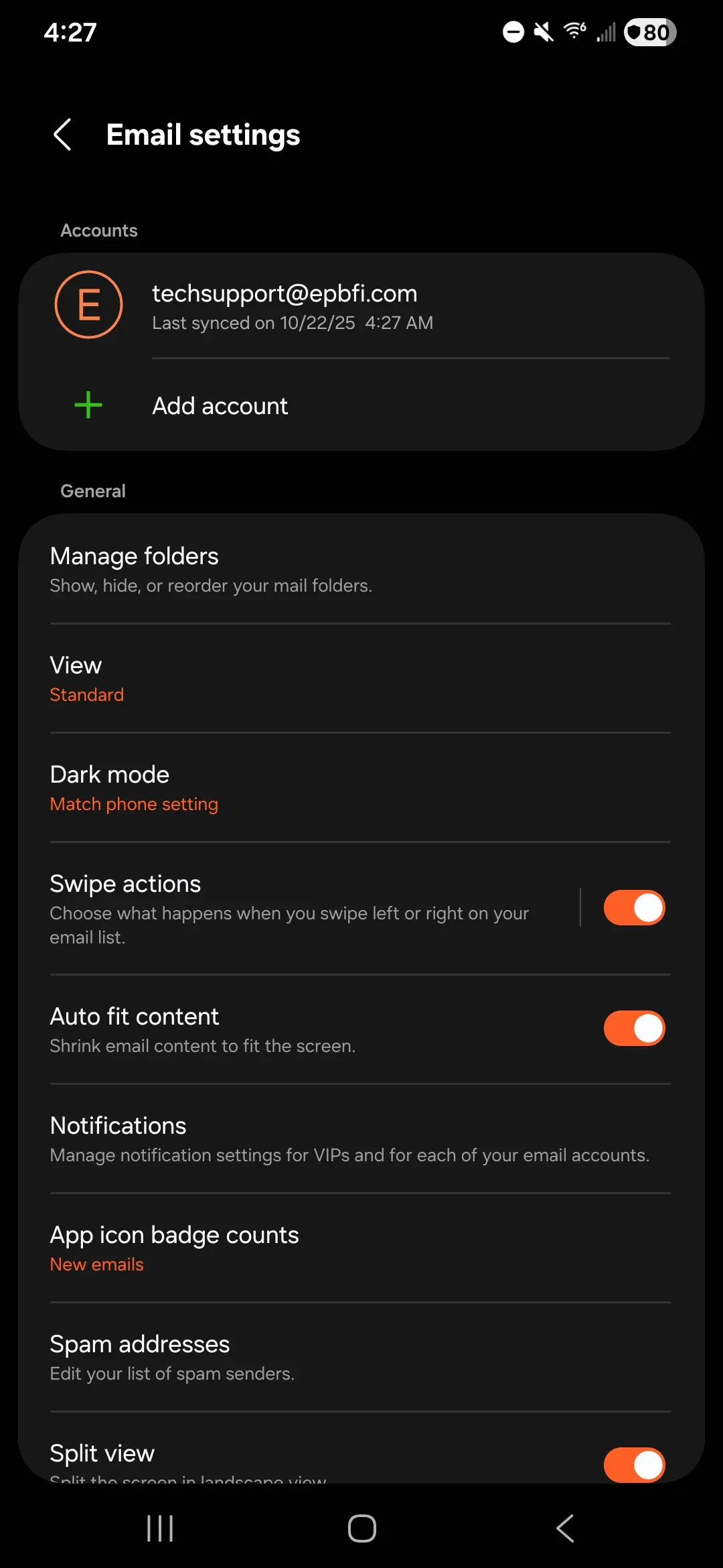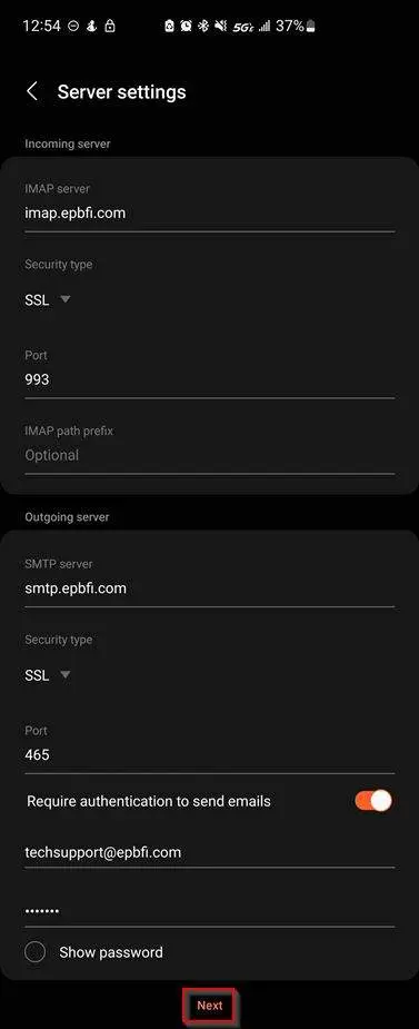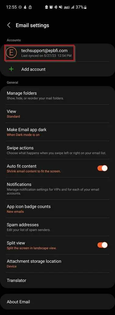 How to for adding epbfi.com email addresses to the Stock Android or Samsung Email app