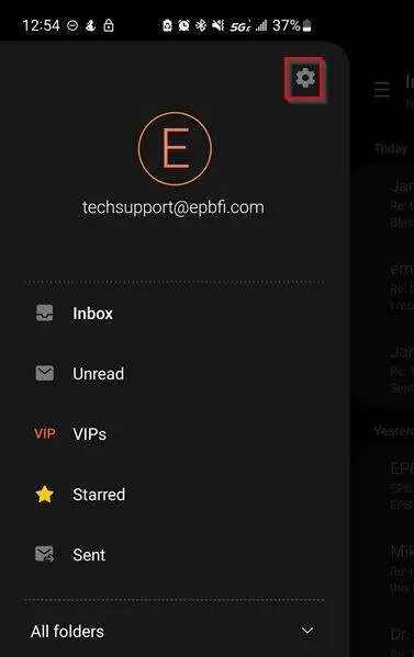 Open email settings. (Gear icon top right of list)