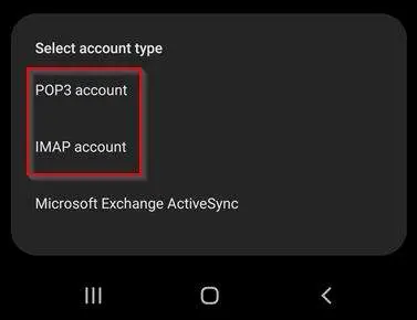Set Account Type at bottom. (IMAP preferred), POP3 will also work.